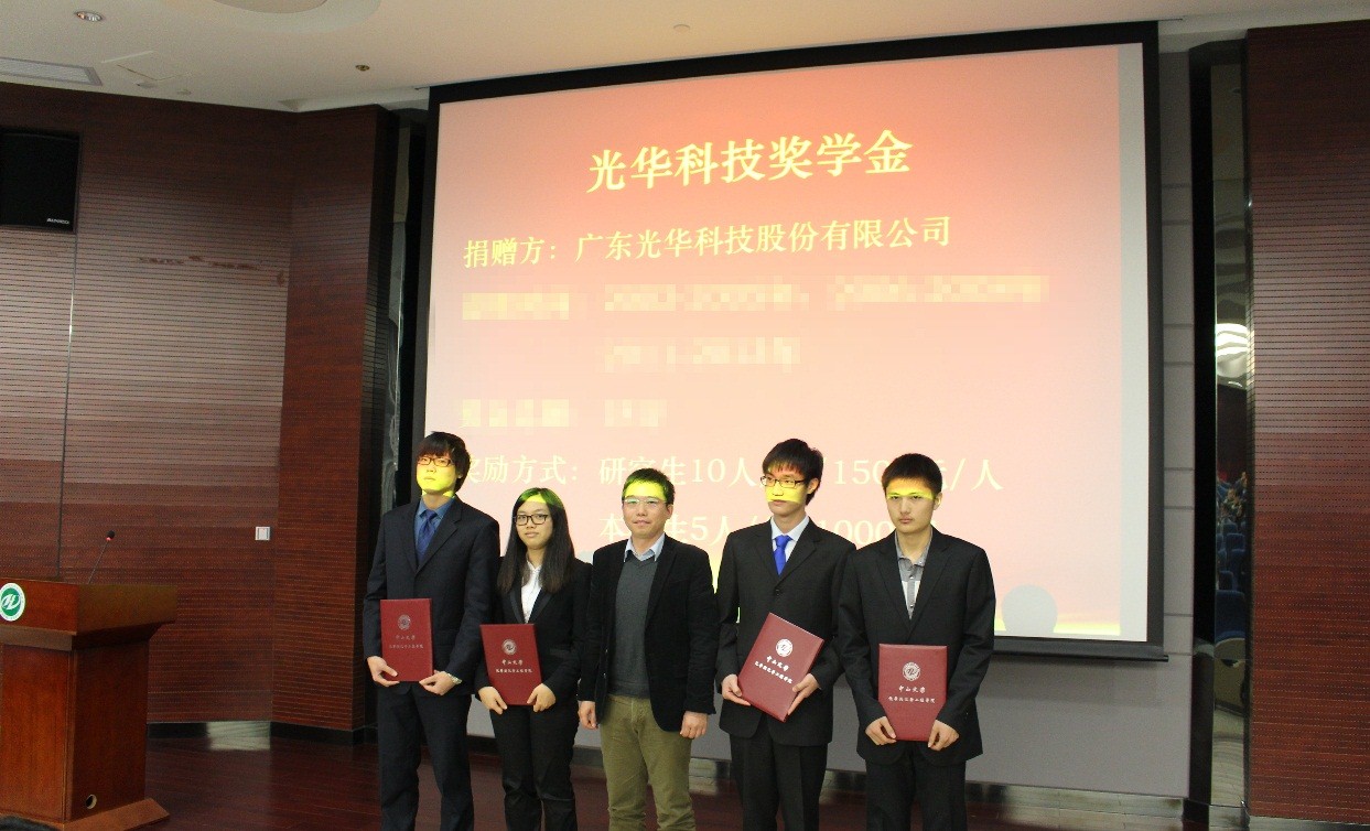 2013年12月26日,光華科技再次在中山大學(xué)化學(xué)工程與工藝學(xué)院的豐盛堂為2012-2013年優(yōu)秀學(xué)子頒發(fā)獎(jiǎng)學(xué)金。以下是頒發(fā)儀式相關(guān)照片: